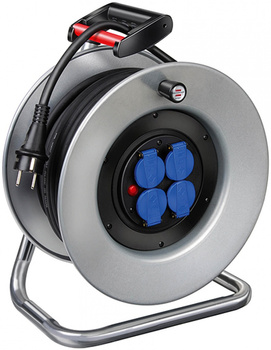 Przedłużacz bębnowy BRENNENSTUHL Garant Stal 240", H05RRF3G1. 5, 4 gniazdka, 25m, srebrnoczarny
