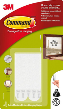 Rzepy COMMAND™ (17201 PL), do wieszania obrazów, średnie, 4 szt., białe