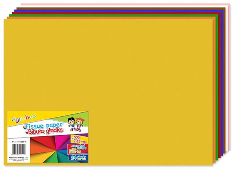 Bibuła gładka GIMBOO, w składkach, 50x70cm, 24ark., mix kolorów