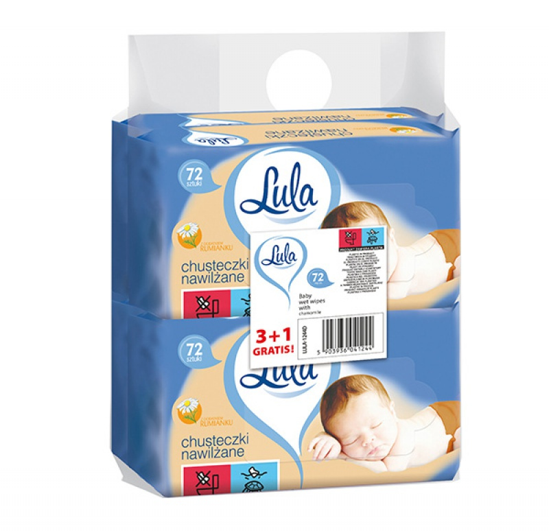Chusteczki nawilżane LULA, z rumiankiem 3x72 szt. + 1 op. gratis
