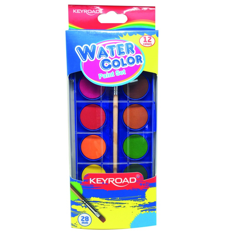 Farby akwarelowe KEYROAD, z pędzelkiem, 12 kolorów, zawieszka