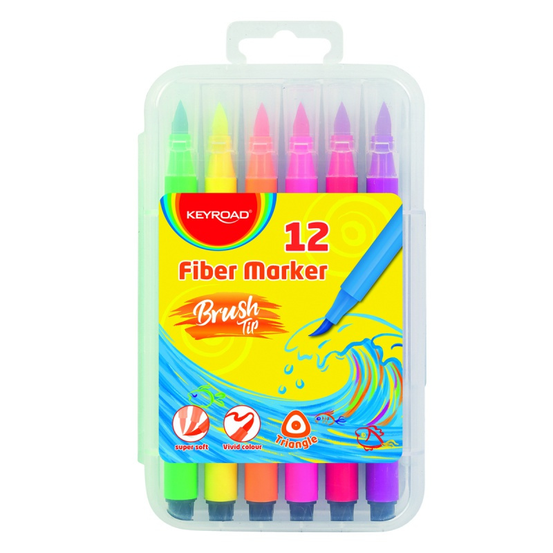 Flamastry KEYROAD, zakończone pędzlem, trójkątne, 12 szt., pudełko