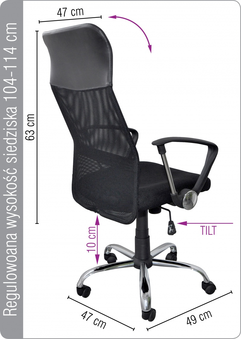 szerokość oparcia: 47 cm (w najszerszym punkcie)