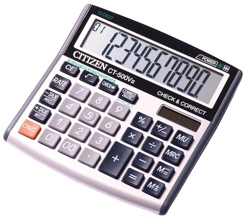 Kalkulator biurowy CITIZEN CT-500VII, 10-cyfrowy, 136x134mm, szary
