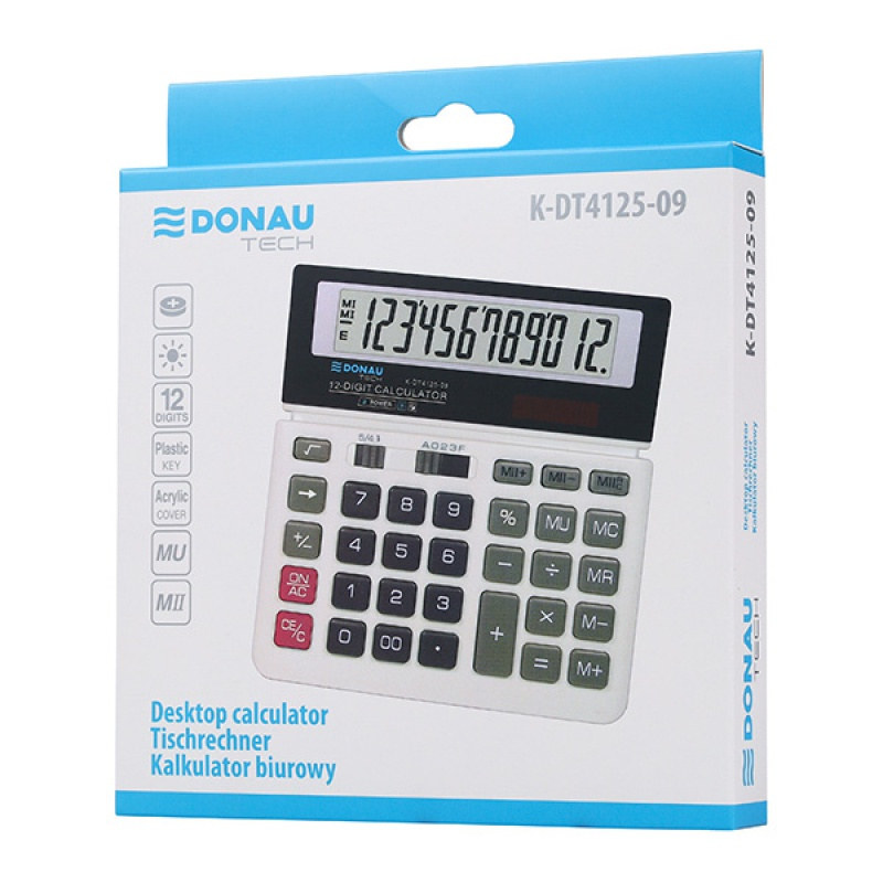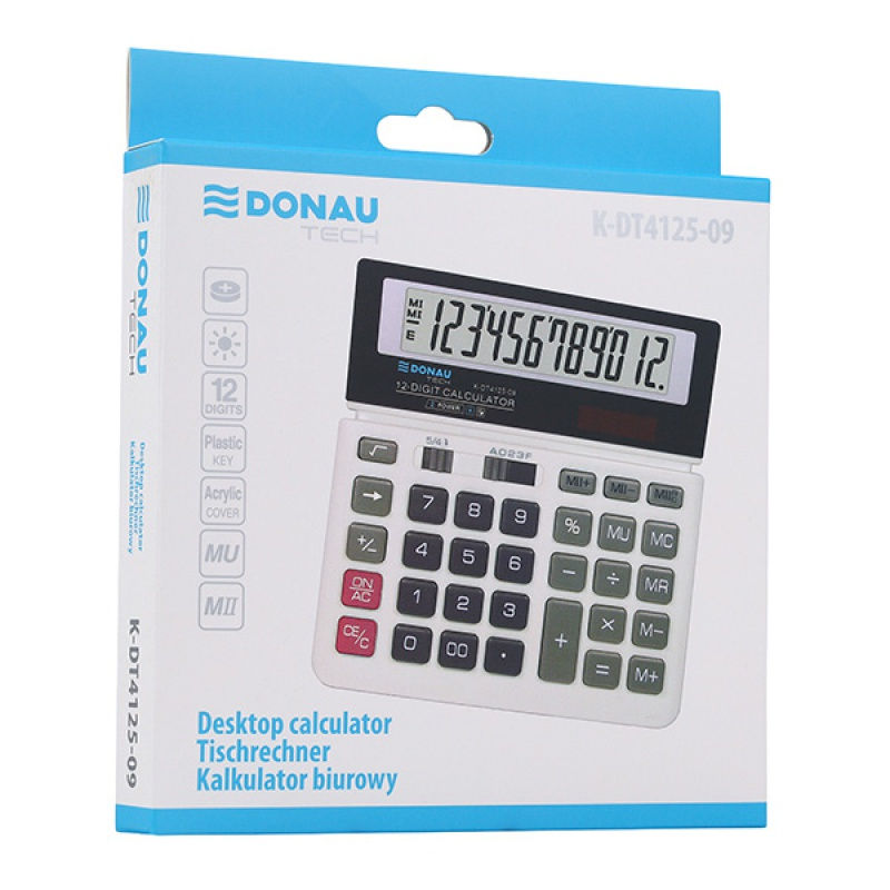 Kalkulator biurowy DONAU TECH, 12-cyfr. wyświetlacz, wym. 155x152x28 mm, biały