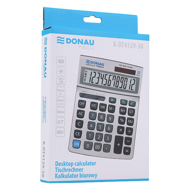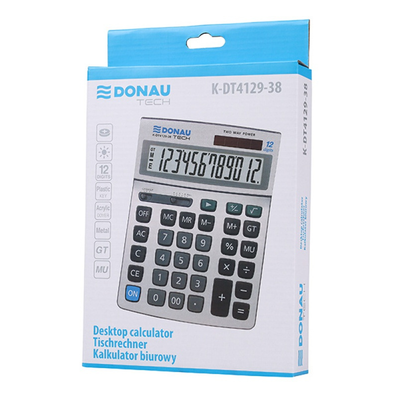 Kalkulator biurowy DONAU TECH, 12-cyfr. wyświetlacz, wym. 210x154x37 mm, metalowa obudowa, srebrny