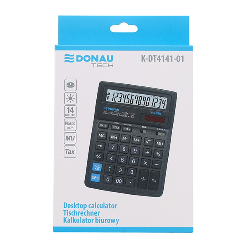 Kalkulator biurowy DONAU TECH, 14-cyfr. wyświetlacz, wym. 190x143x40 mm, czarny