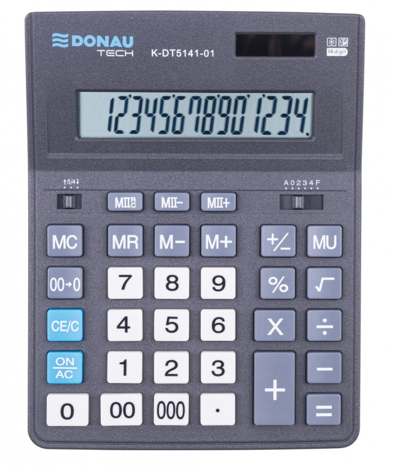 Kalkulator biurowy DONAU TECH OFFICE, 14-cyfr. wyświetlacz, wym. 201x155x35mm, czarny