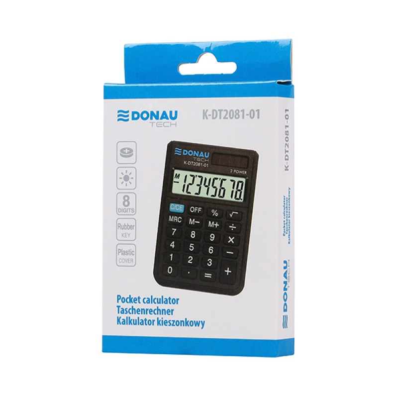 Kalkulator kieszonkowy DONAU TECH, 8-cyfr. wyświetlacz, wym. 90x60x11 mm, czarny