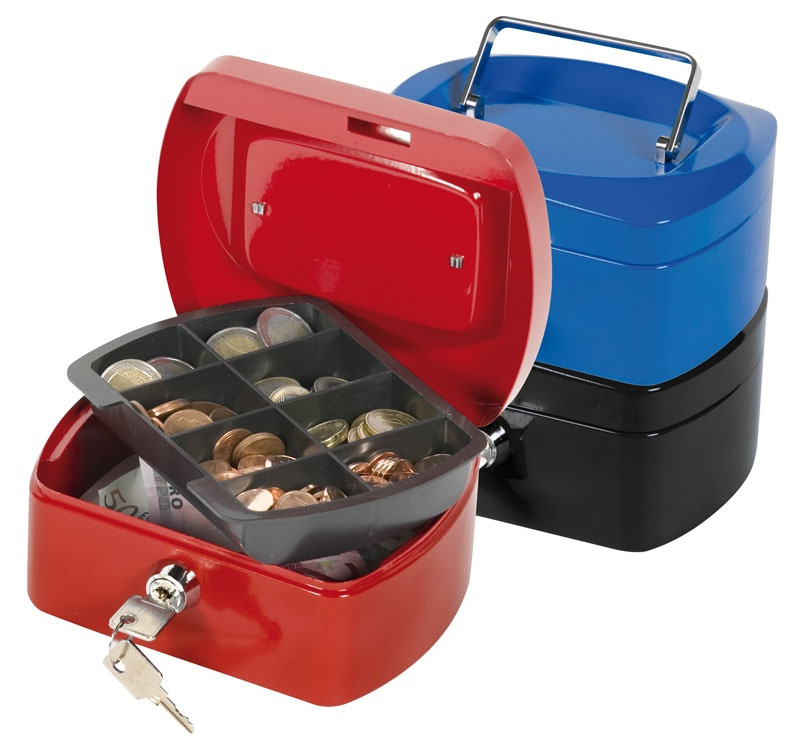 mała kasetka na pieniądze wyprodukowana z lakierowanego proszkowo metalu odpornego na zarysowania