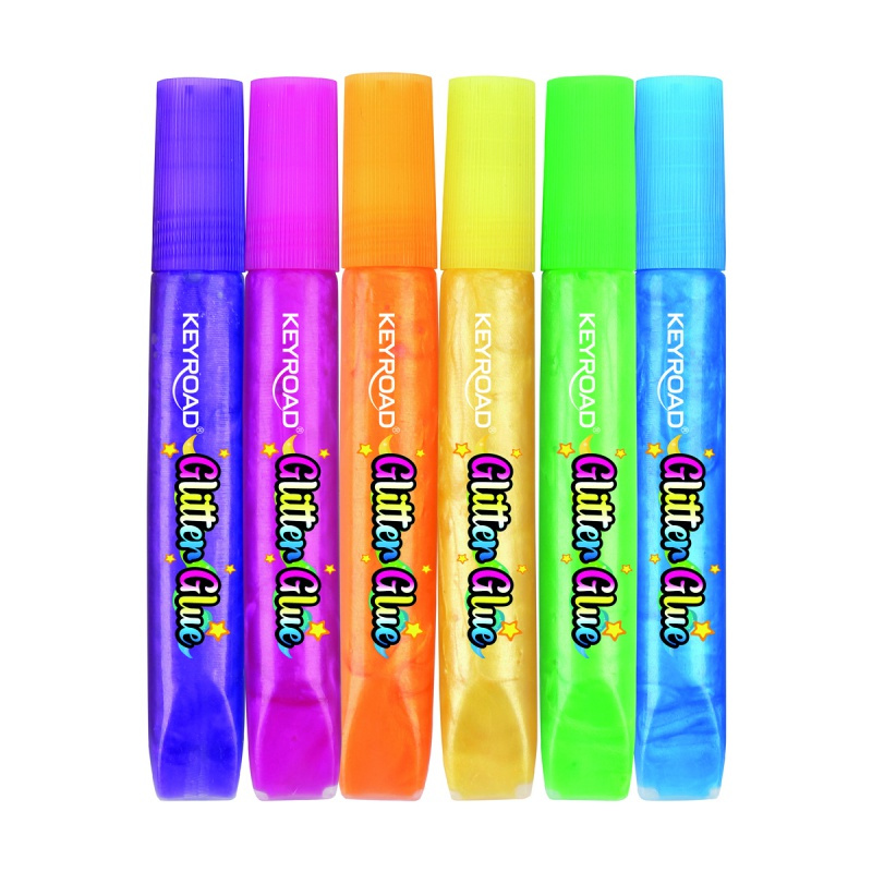 Klej brokatowy KEYROAD, 6 perłowych kolorów x 10g, blister