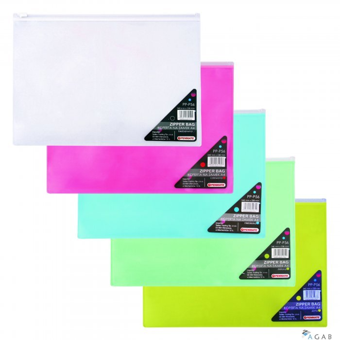 Koperta wykonana z bezbarwnego lub kolorowego polipropylenu. Zamykana na bezbarwny zamek strunowy. Wymiary: 340 x 238 mm