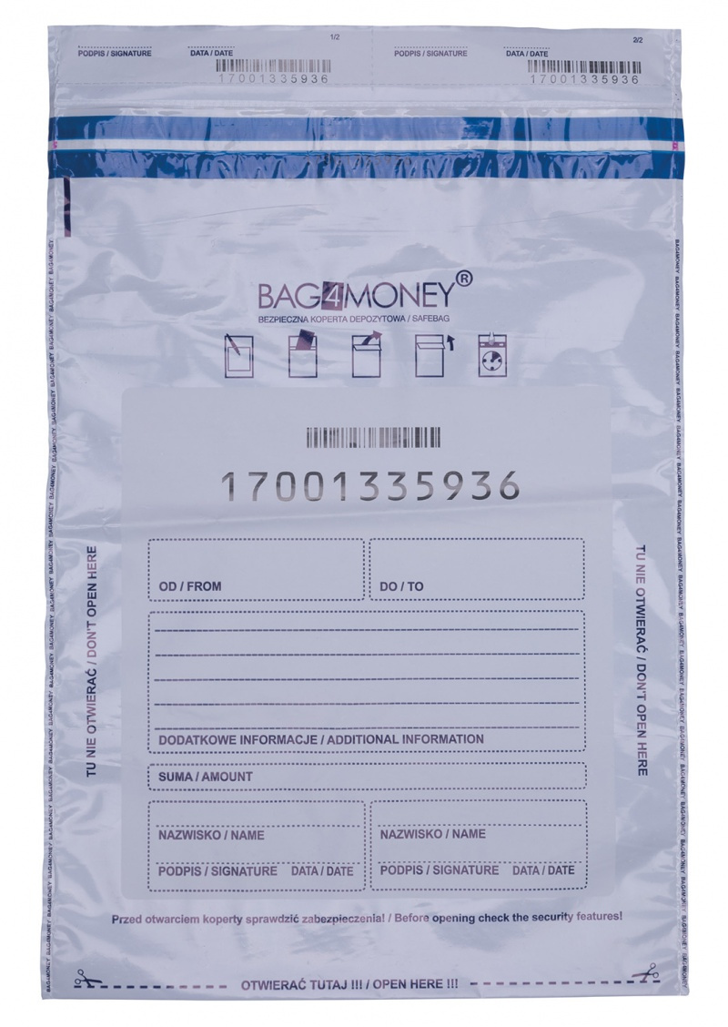 koperta bezpieczna, foliowa posiada zabezpieczenia dzięki którym po zaklejeniu każda próba otwarcia pozostawia widoczne ślady