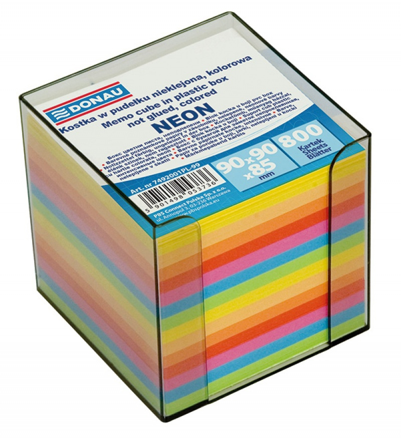 Kostka DONAU nieklejona, w pudełku, 95x95x95mm, ok. 800 kart., neon, mix kolorów