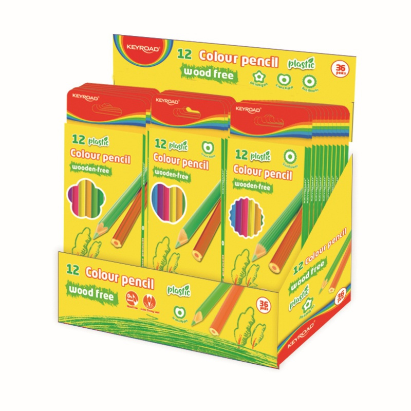 Kredki ołówkowe KEYROAD, bezdrzewne, 12 szt., pudełko zawieszka, display, mix kolorów