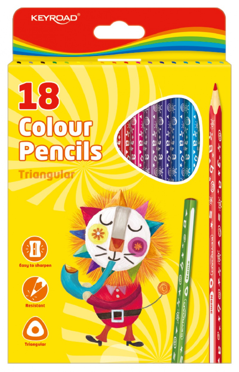 Kredki ołówkowe KEYROAD, trójkątne, 18szt., mix kolorów
