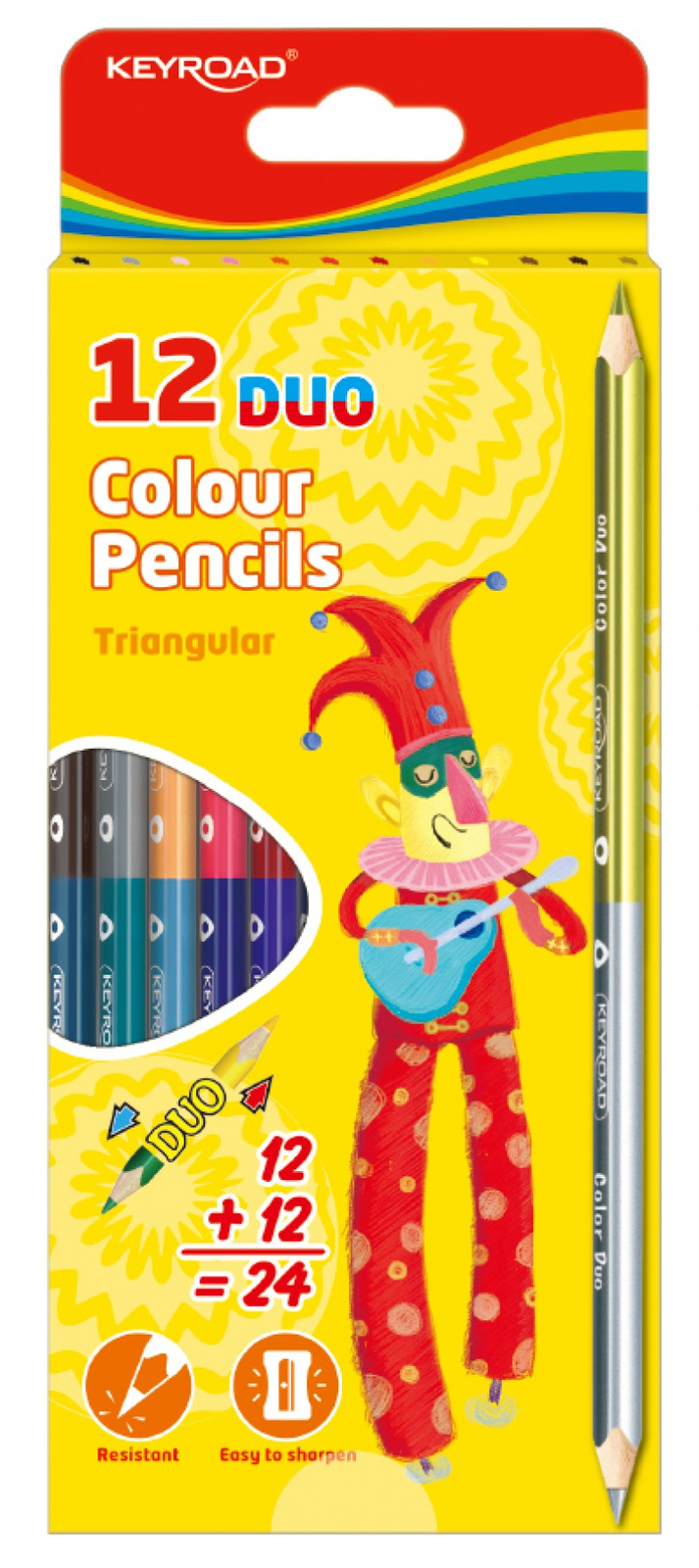 Kredki ołówkowe KEYROAD, trójkątne, dwustronne, 12szt., mix kolorów
