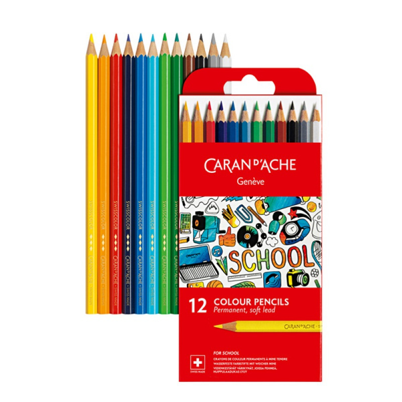 Kredki permanentne CARAN D'ACHE, 12 kolorów, School Line