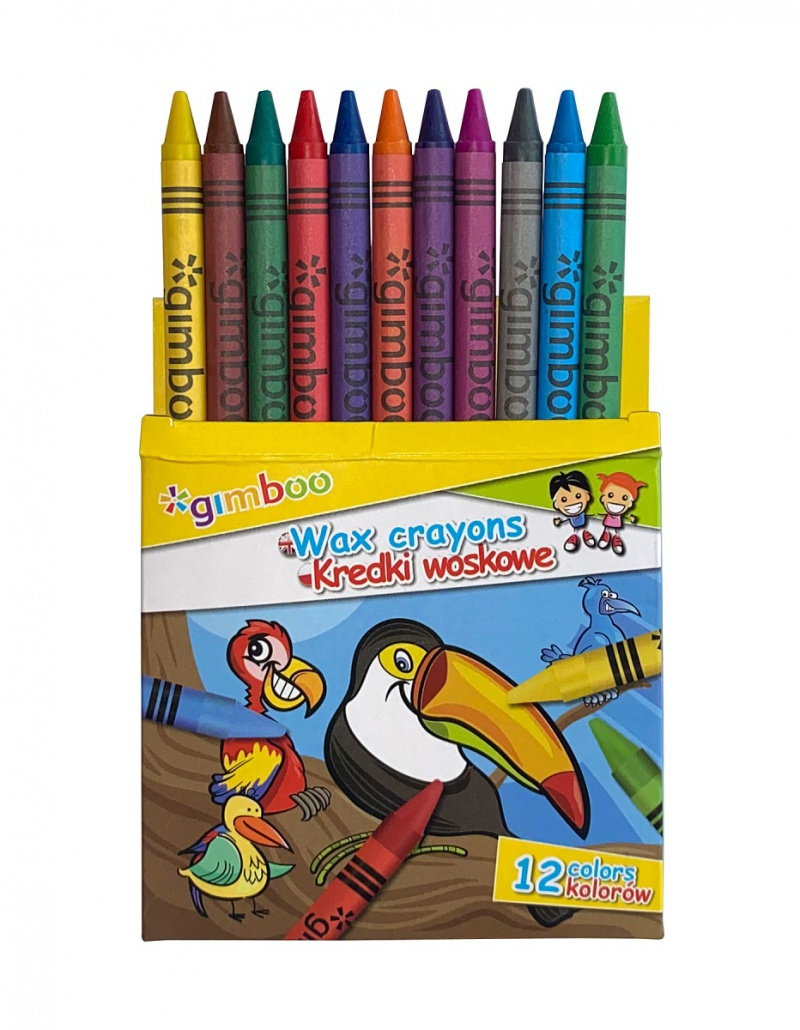 Kredki świecowe GIMBOO, 12szt., 8mm, mix kolorów