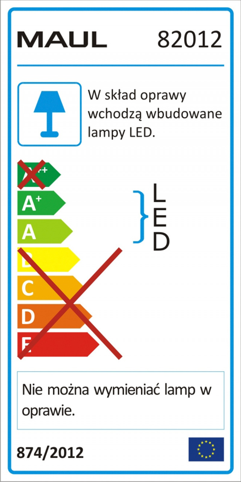 posiada 1 wysokowydajną żarówkę LED, wbudowaną, niewymienną