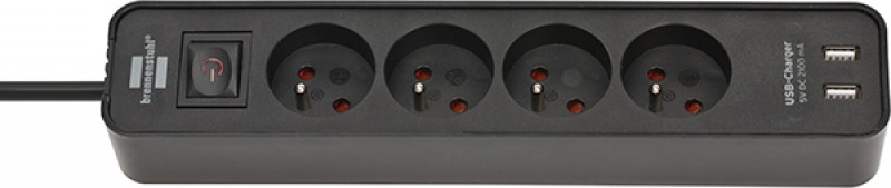 Listwa zasilająca BRENNENSTUHL ECOLOR, 4 gniazda, 2 x USB, długość przewodu: 1,5m, czarna