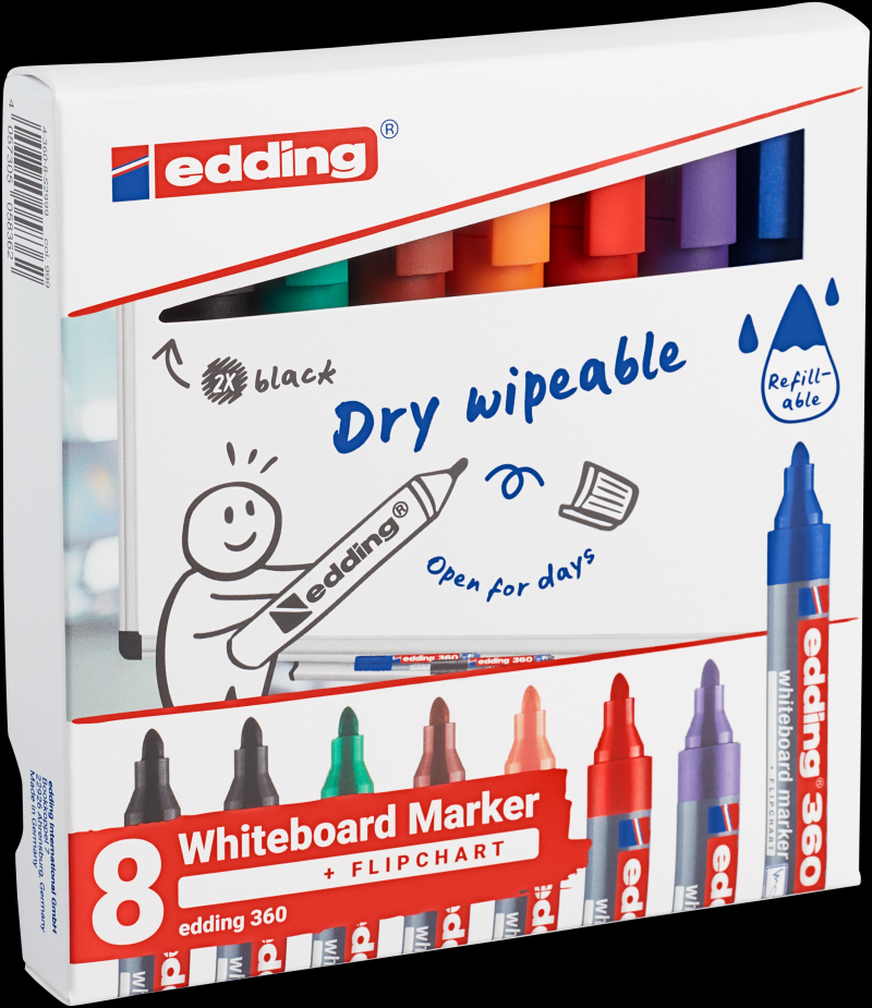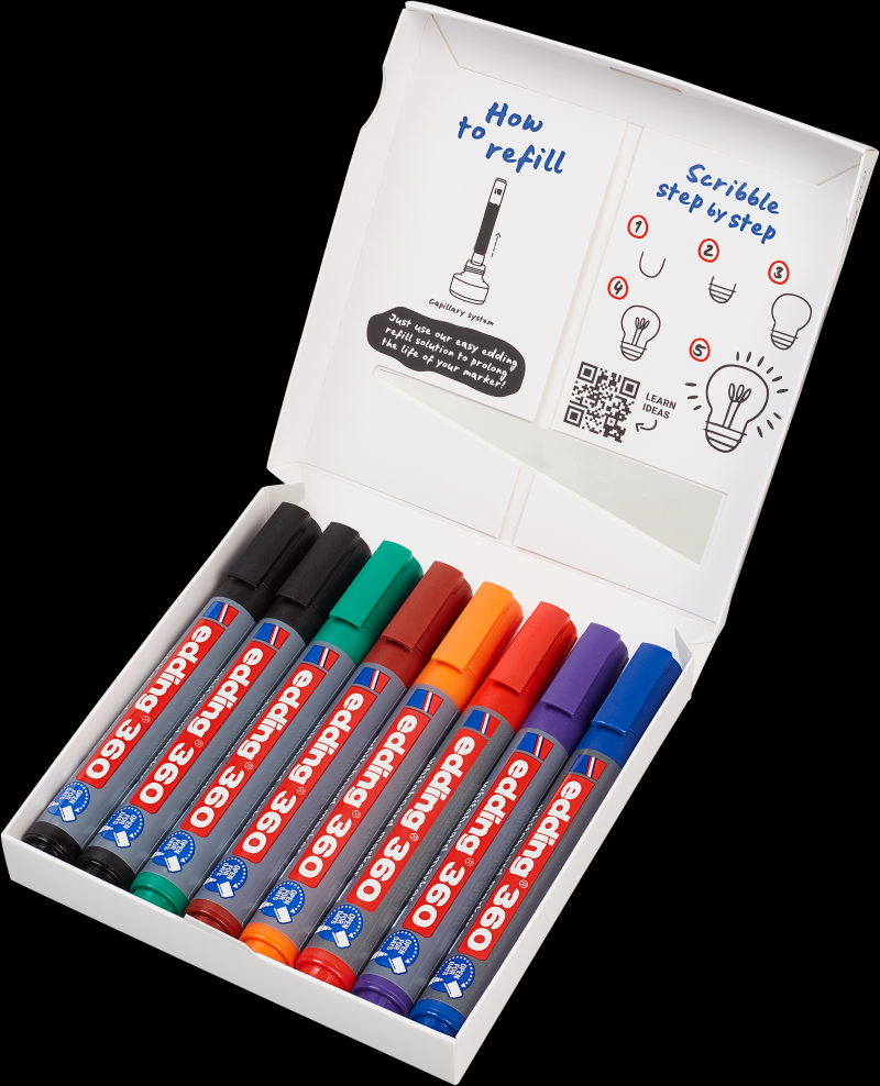 Marker do tablic e-360 EDDING, 1,5-3mm, 8 szt., mix kolorów
