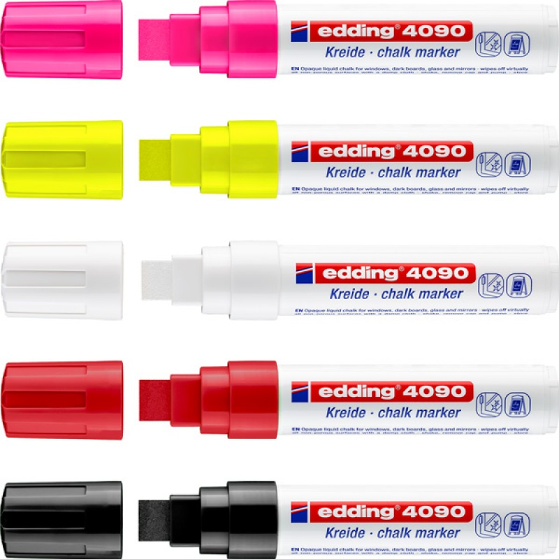 Marker kredowy e-4090 EDDING, 4-15 mm, pudełko, biały i 4 szt. mix kolorów