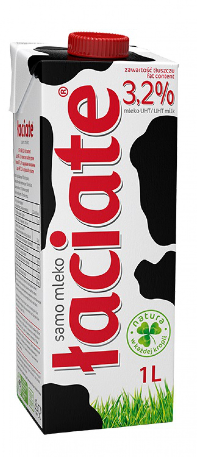 pyszne polskie mleko od krów karmionych paszami bez GMO doskonałe źródło białka bogactwo cennych witamin i składników mineralnych mleko Łaciate to niezmiennie od lat sprzedażowy hit Polacy pokochali mleko UHT, bo dzięki sprawdzonej technologii i nowoczesnym opakowaniomzachowuje świezość przez 6 miesięcy (do momentu otwarcia), nie tracąc smaku ani wartości odżywczych zawartość tłuszczu 3,2% pojemność 1 l