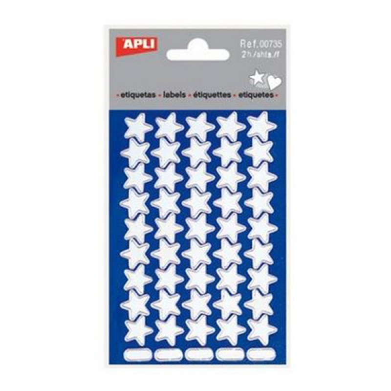 Naklejki APLI, gwiazdki, 90 szt., srebrne