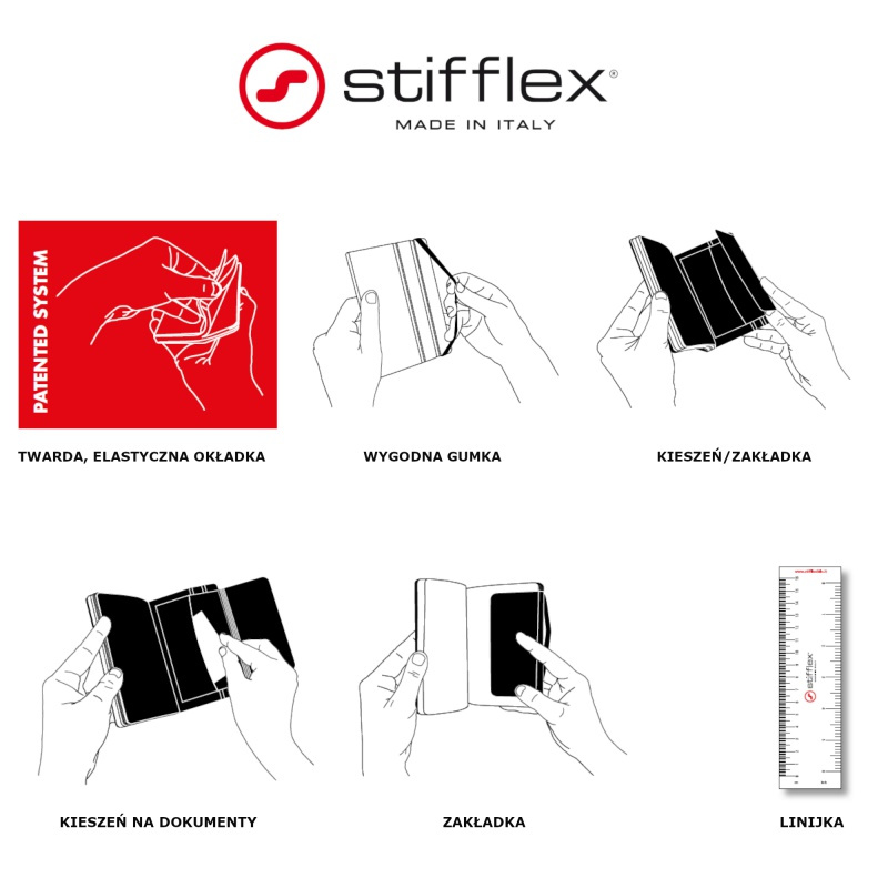 Okładka notatnika Stifflex jest twarda i elastyczna jednocześnie. Jest to możliwe dzięki opatentowanemu systemowi, który zaprojektował Giuliano Mazzuoli założyciel marki Stifflex.