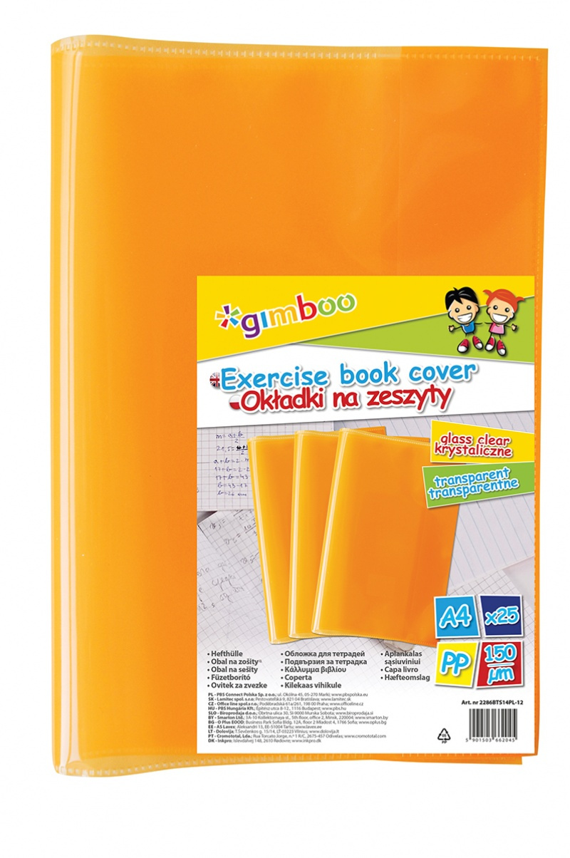 Okładka na zeszyt GIMBOO, krystaliczna, A4, 150mikr., pomarańczowa