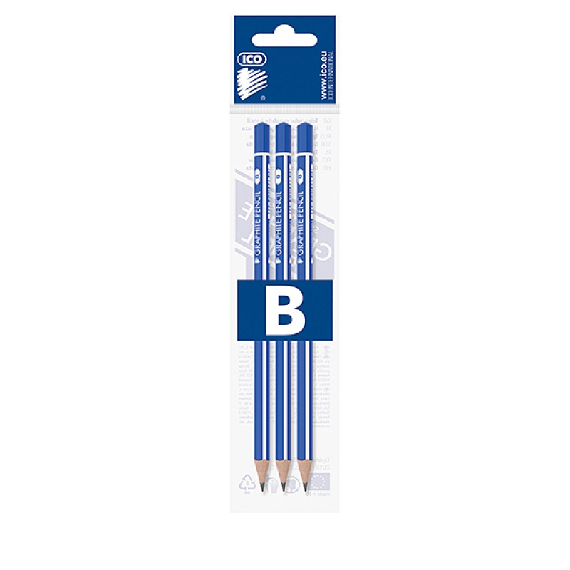 Ołówek drewniany ICO Signetta, B, trójkątny, 3 szt., zawieszka, niebieski
