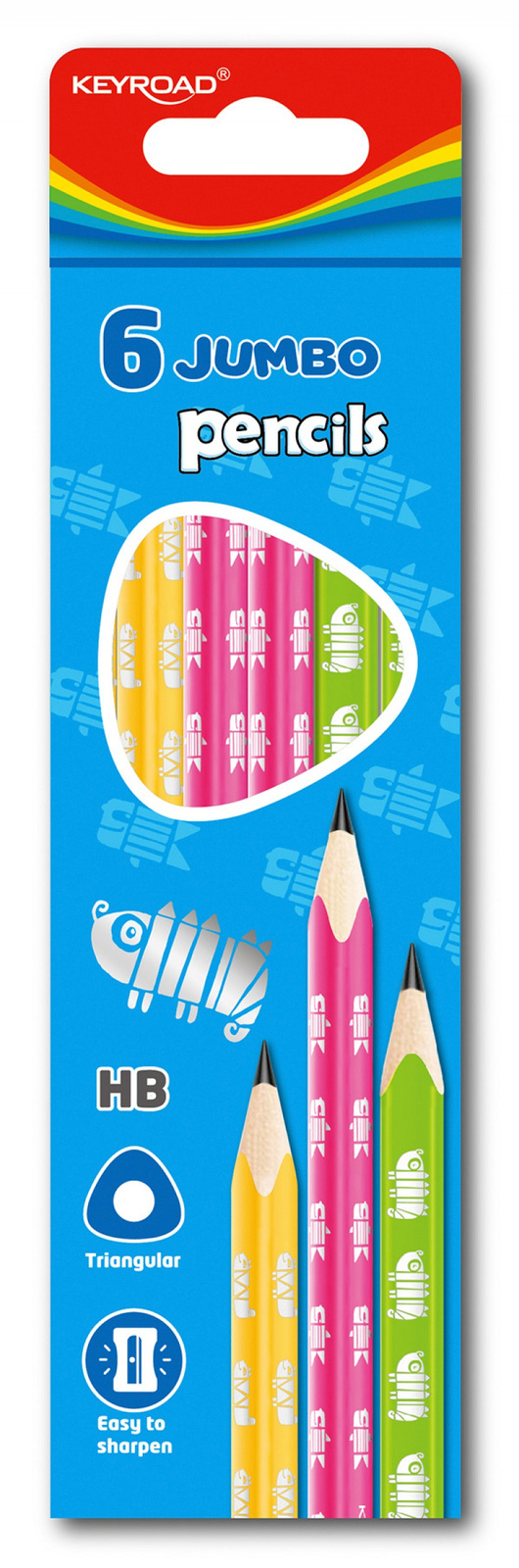 Ołówek drewniany KEYROAD, HB, trójkątny, jumbo, mix kolorów