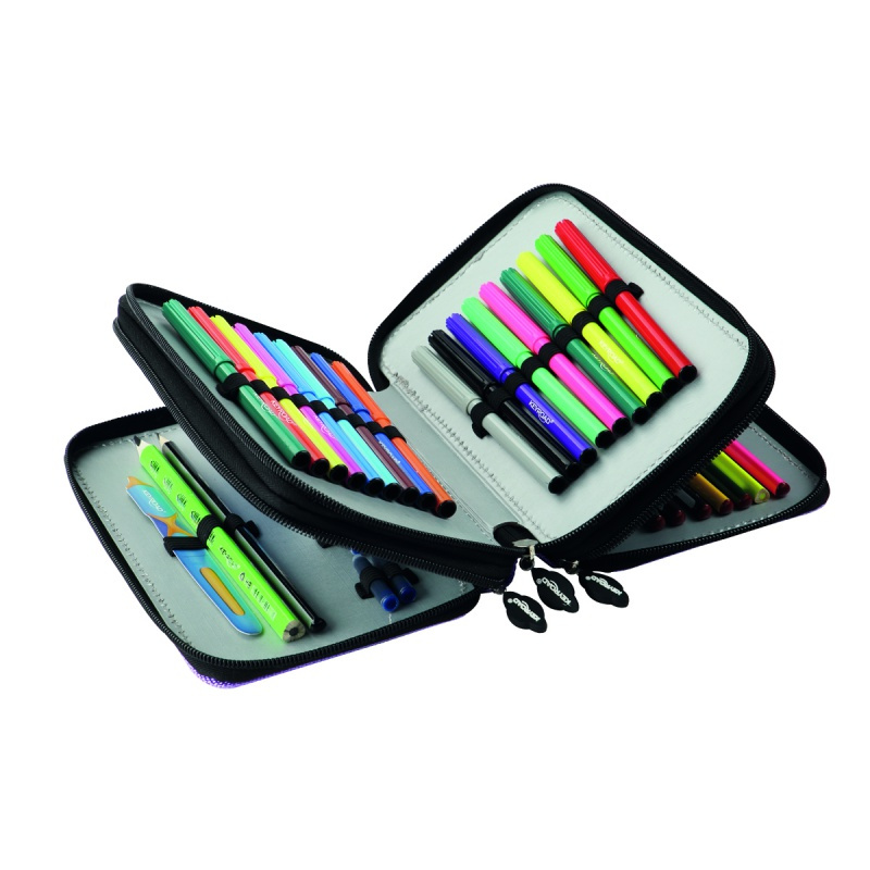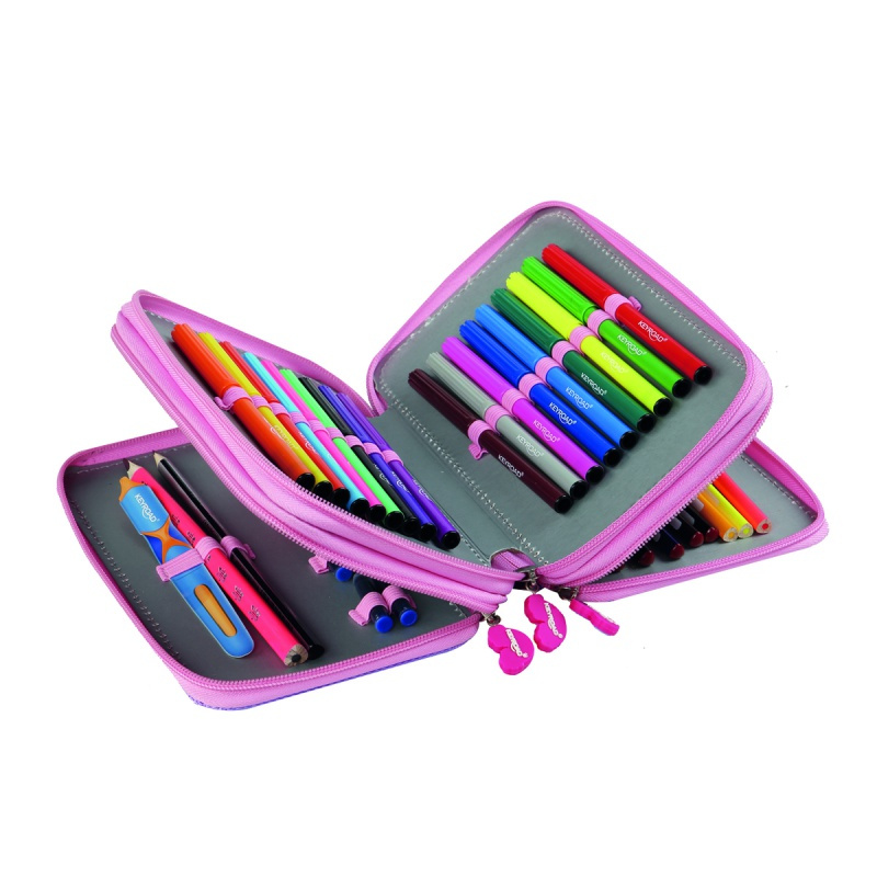 Piórnik KEYROAD, wyposażony, 3-komorowy, 52 elementy, mix kolorów