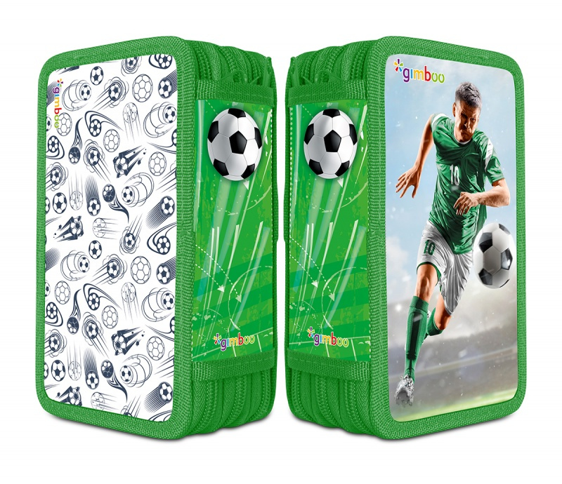 Piórnik szkolny GIMBOO, z wyposażeniem, 3 komory, piłka nożna, zielony