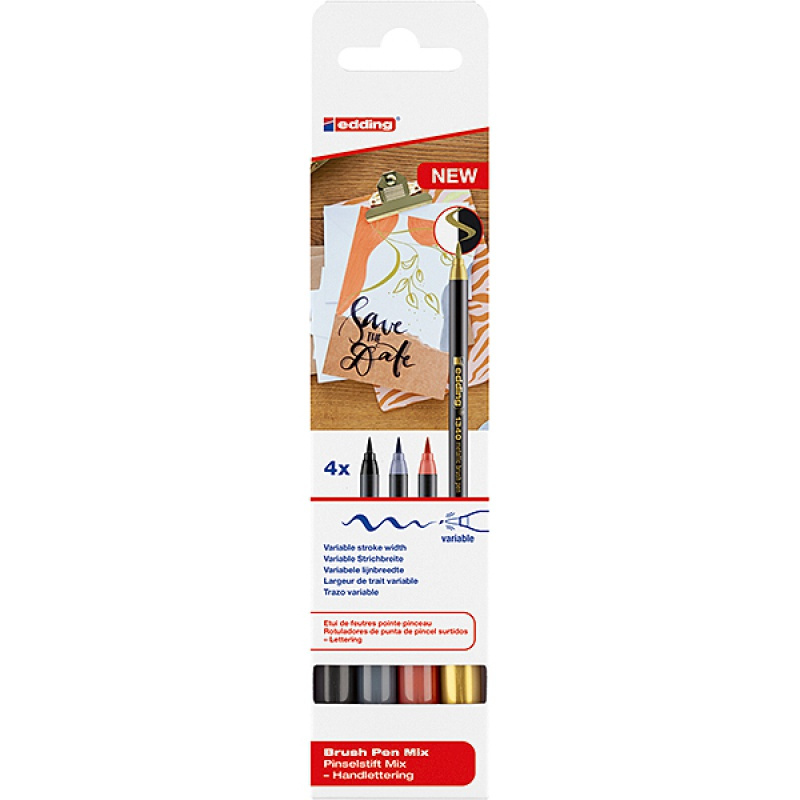 Pisak z końcówką pędzelkową e-1340 EDDING, 4 szt., mix kolorów metalicznych