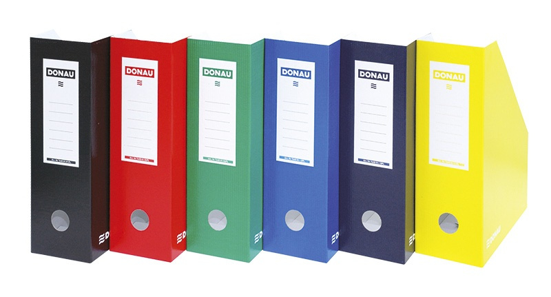 Pojemnik na dokumenty DONAU, karton, ścięty, A4/100mm, lakierowany, granatowy