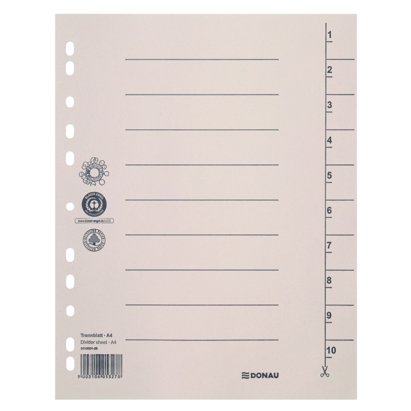 Przekładka DONAU, karton, A4, 235x300mm, 1-10, 1 karta, jasnobrązowa