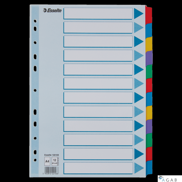 Przekładki, kolorowy karton, karta opisowa Mylar A4, Esselte, 12 kart, , 100169