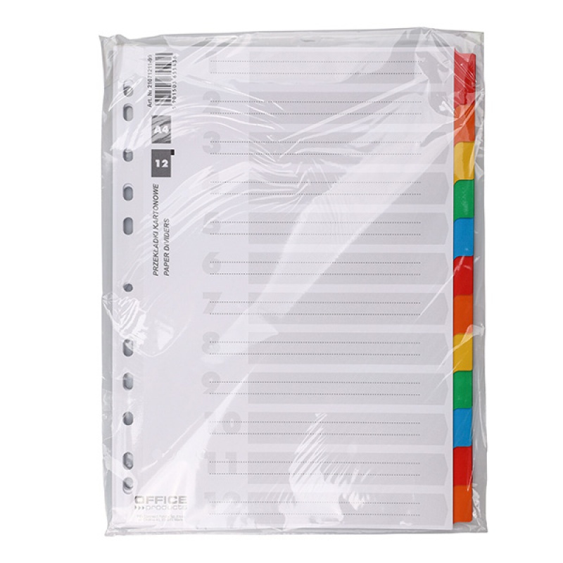 Przekładki OFFICE PRODUCTS, karton, A4, 227x297mm, 12 kart, lam. indeks, mix kolorów