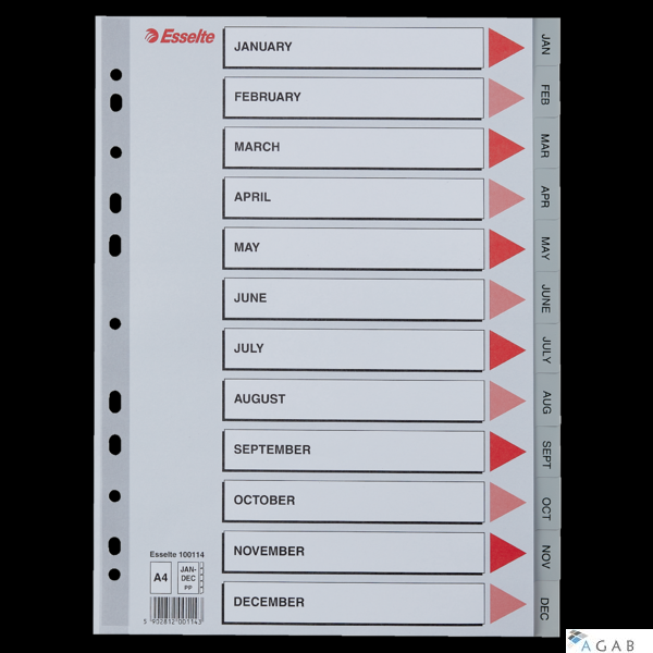 Przekładki plastikowe szare PP A4 12 miesięcy 100114 numeryczne ESSELTE