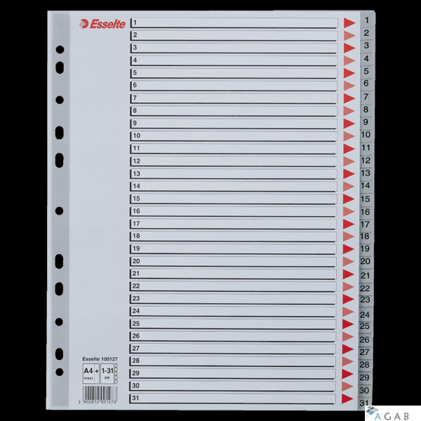 Przekładki plastikowe szare PP alfabetyczne A4 Esselte, 1-31 maxi, , 100127
