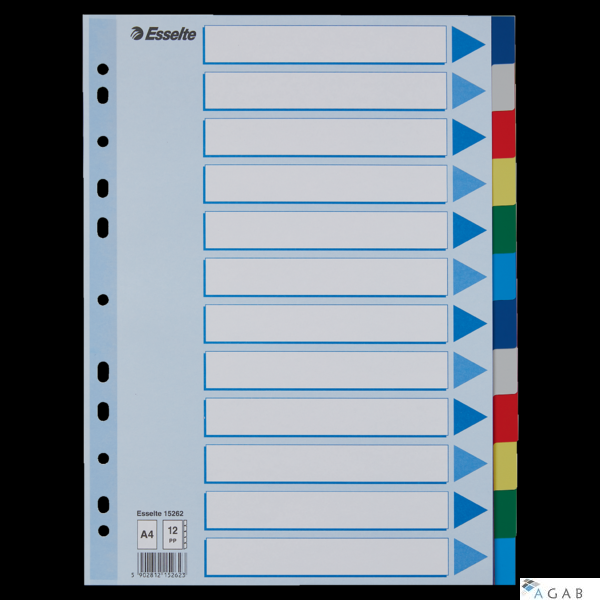 Przekładki plastikowe z PP A4 ESSELTE 12 kart 15262