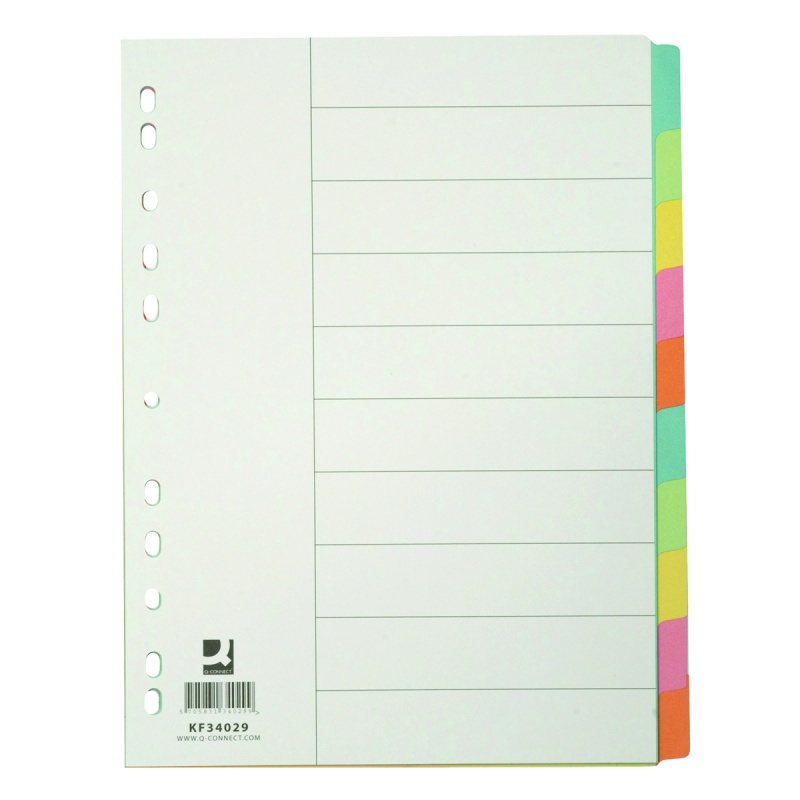 Przekładki Q-CONNECT, karton, A4, 223x297mm, 10 kart, mix kolorów