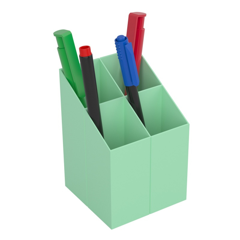 Przybornik na biurko ICO kwadratowy, plastikowy, 4 komory, pastelowy zielony