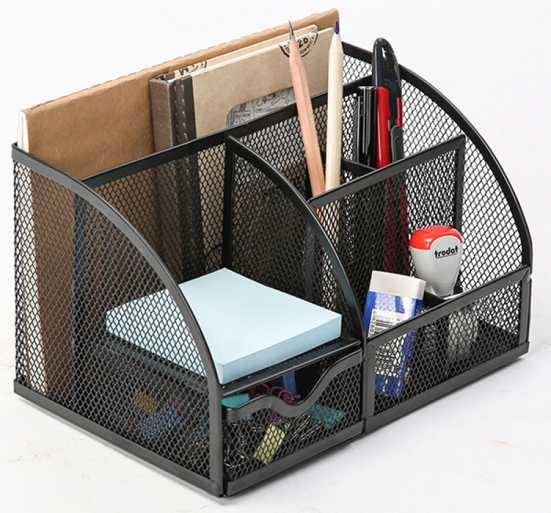 przybornik na biurko, wykonany z metalowej siateczki powlekanej lakierem