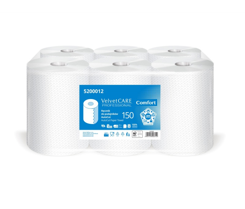 Ręcznik do podajników VELVET AutoCut, celulozowe, 2-warstwowe, śr. 19cm, 6rolek x 150m, biały