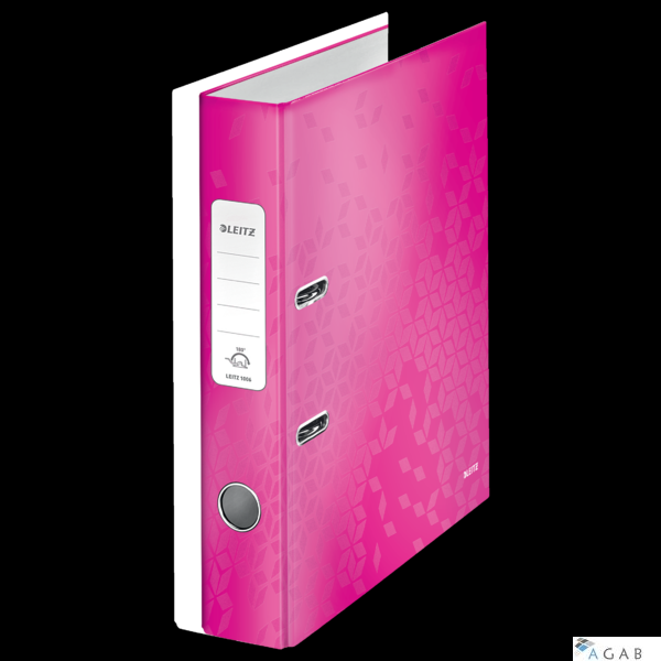 - Segregator z mechanizmem dźwigniowym 180_ WOW Leitz__Innowacyjny segregator, z opatentowanym mechanizmem, który otwiera się o 180_, co ułatwia szybsze przekładanie dokumentów w segregatorze o 20%._- Okładki oklejone kolorowym papierem, który został zabezp