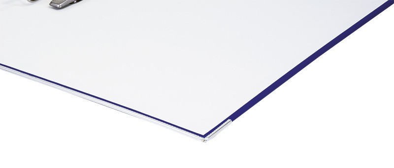 popularny segregator, wykonany z tektury o grubości 2,1mm i gramaturze 1290gsm, wyposażony w dolną listwę wzmacniającą