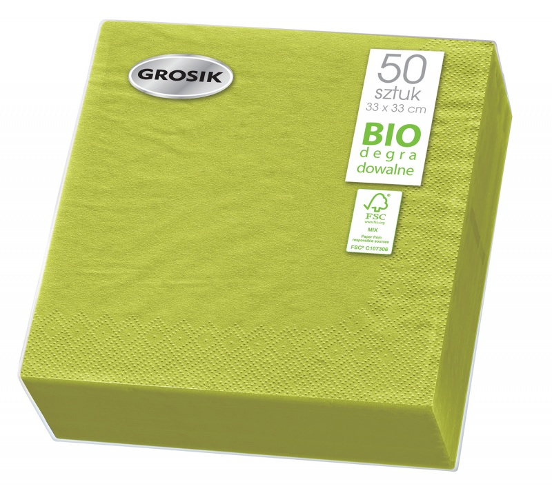 Serwetki GROSIK, dwuwarstowe, składane, 33x33cm, 50 szt., limonka